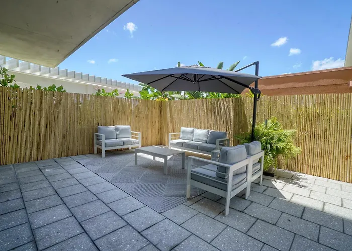 The spacious 1-bedroom 515-Trendy 2Bd2Ba Midtown Huge Private Patio! Apartment Miami includes a terrace and is located approximately 5 minutes' walk from American Police Hall of Fame & Museum. Situated not far from the Miami Design District, this 95 m² apartment offers a private swimming pool for guests' enjoyment.